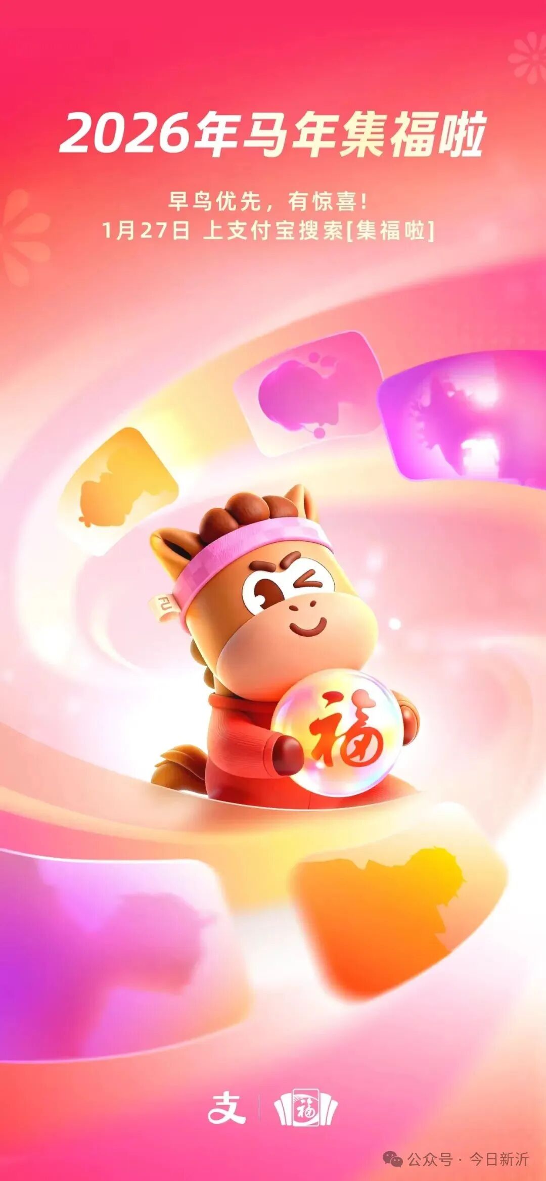 腊八过完过年的脚步真是越来越近了春节氛围搭子支付宝「集福啦」闪亮登场今年支付宝玩起了“集头福”1月27日起让你抢个好彩头!2026支付宝集福攻略速看! 01抢头福、集福卡今天,你是不是已经看