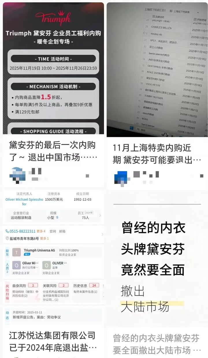 11月21日,德国内衣黛安芬集团中国子公司宣布,自2025年12月31日起停止在中国大陆的运营,从12月起陆续关闭线下全部门店,同时,陆续停止线上渠道的运营。据悉,作为全球知名的内衣品牌,黛安芬的历史