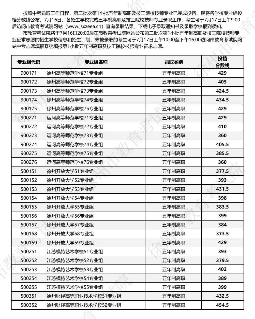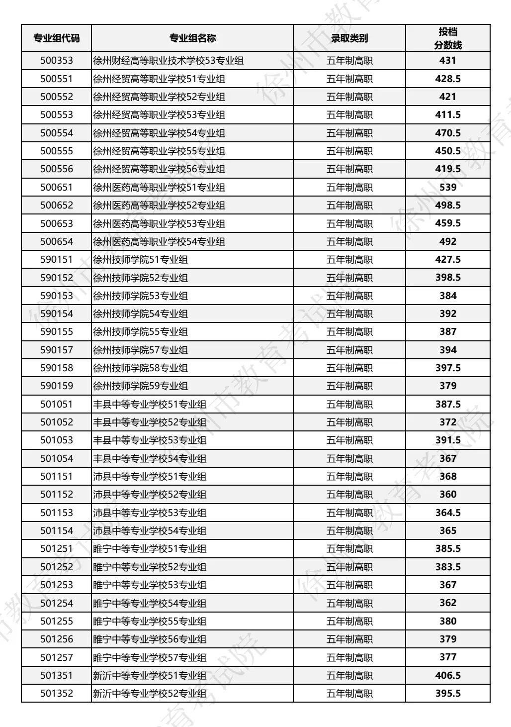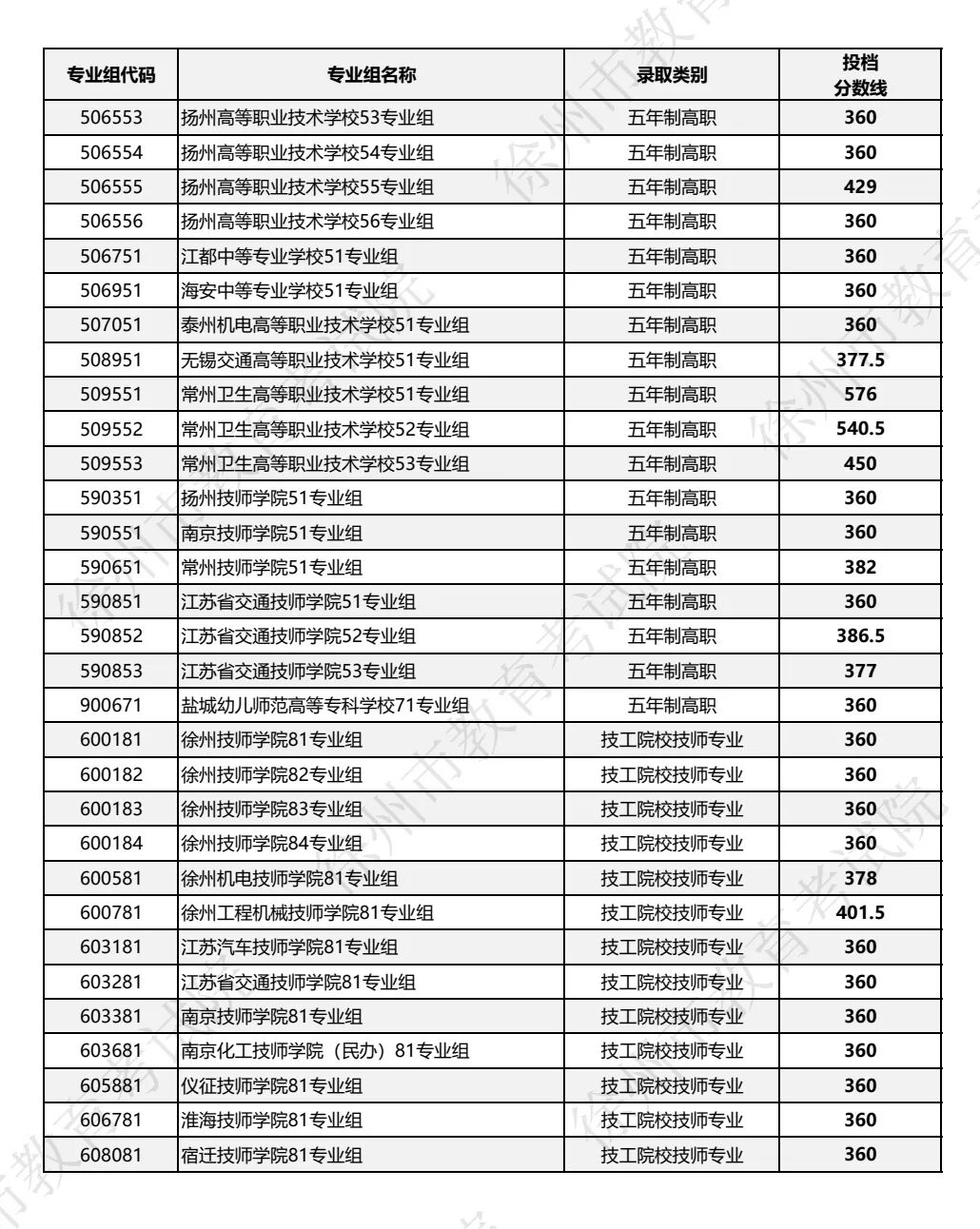 徐州市教育局发布2025年第三批次第1小批五年制高职及技工院校技师专业投档分数线一起来看看▼