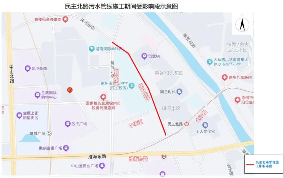 近日徐州市公安局交通管理局发布交通限制通告涉及荆马河南路(天齐南路西侧至山南小镇)民主北路(大马路至解放北路)👇🏻👇🏻👇🏻关于对荆马河南路部分路段实行交通限制的通告为保障市重点工程——荆马