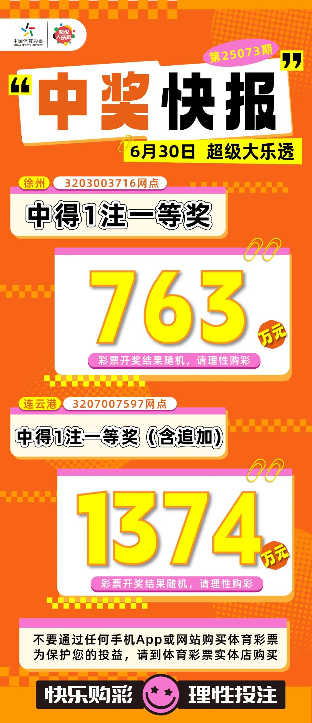 763万!763万!徐州又诞生一位大富翁!小编要羡慕哭了!一起来看看吧~6月30日体彩超级大乐透第25073期开奖前区开出号码01、04、17、33、34后区开出号码03、09共开出11注一等奖徐州、