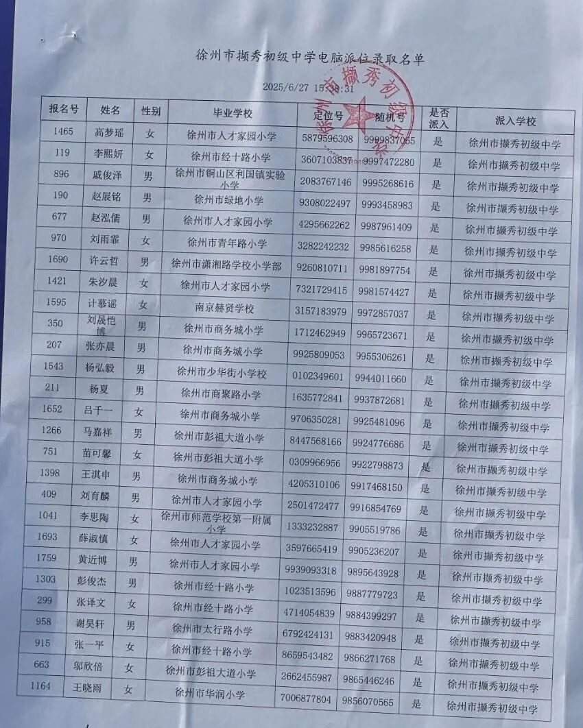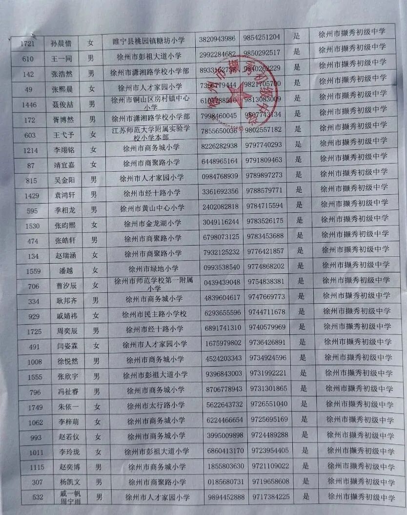 今天下午3点徐州市撷秀初级中学徐州市第三十四中学徐州市第三十六中学面向特定区域电脑派位招生刚刚,录取名单已公布!徐州市撷秀初级中学徐州市第三十四中学徐州市第三十六中学
