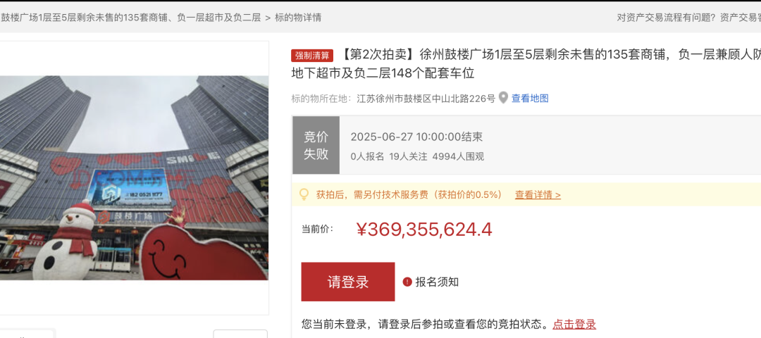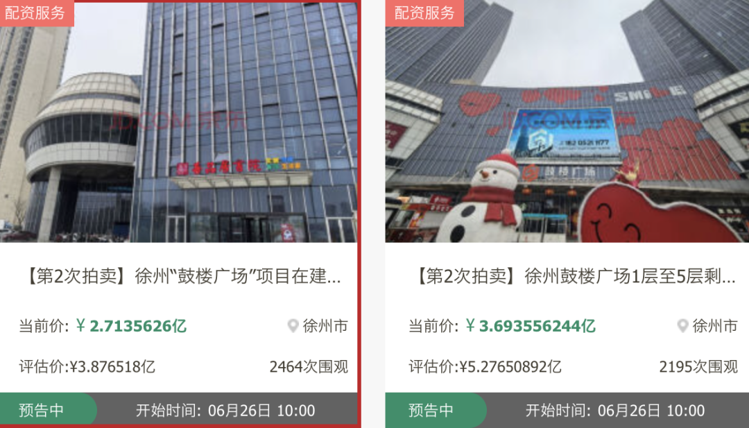前段时间,我们写了徐州市中心朝阳市场被拍卖的文章,有网友在评论区留言:鼓楼广场也被卖了。我登录京东拍卖网发现:鼓楼广场大批量商铺、在建酒店、写字楼统统站上法拍台——1-5层的商铺及配套车位,估值5.2