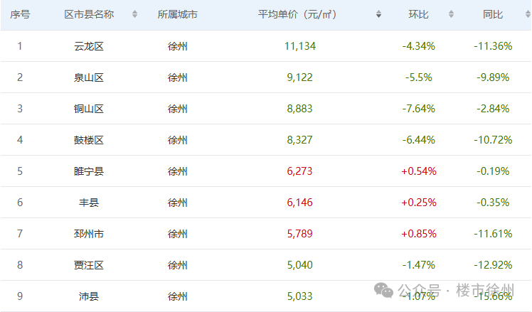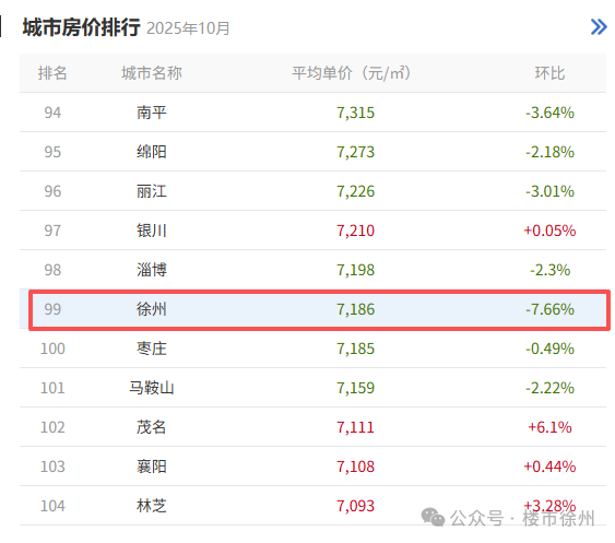 刚刚,最新二手房数据出炉!徐州10月二手房均价7186元/㎡,环比下跌7.66%,位列全国第99位。 |数据来源:中国房价行情网具体到区县,10月份,徐州大部分片区都下降了,但依然有三个县市
