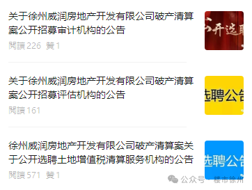 徐州两个停摆许久的项目,传来新消息!1、近期,徐州市破产管理人协会连发三条关于徐州威润房地产开发有限公司的公告,四季连城配套商业有望迎来生机。2、开发商已经破产的一中西B地块已由国企接手,即将开建!0