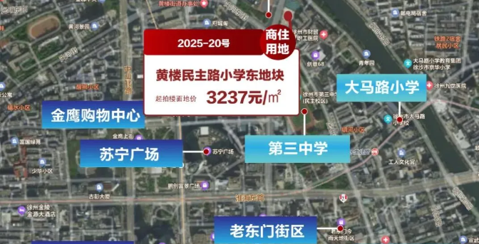 近日徐州市自然资源和规划局发布公告2025-20号黄楼民主路小学东地块正式挂牌出让该地块位于解放北路东、黄河西路南的核心区位将于11月26日公开拍卖起拍总价8199万元起拍楼面价3236.8元/㎡据高