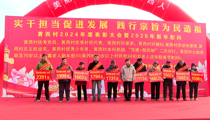 12月30日一大早尽管室外温度降到了零下但黄集镇人民广场上,暖意融融为啥?黄西村在这里开了场“分红大会”为村民发“年终奖”!今天,黄集镇黄西村一年一度的表彰大会及新年慰问活动如期举行,至今已是第七个年