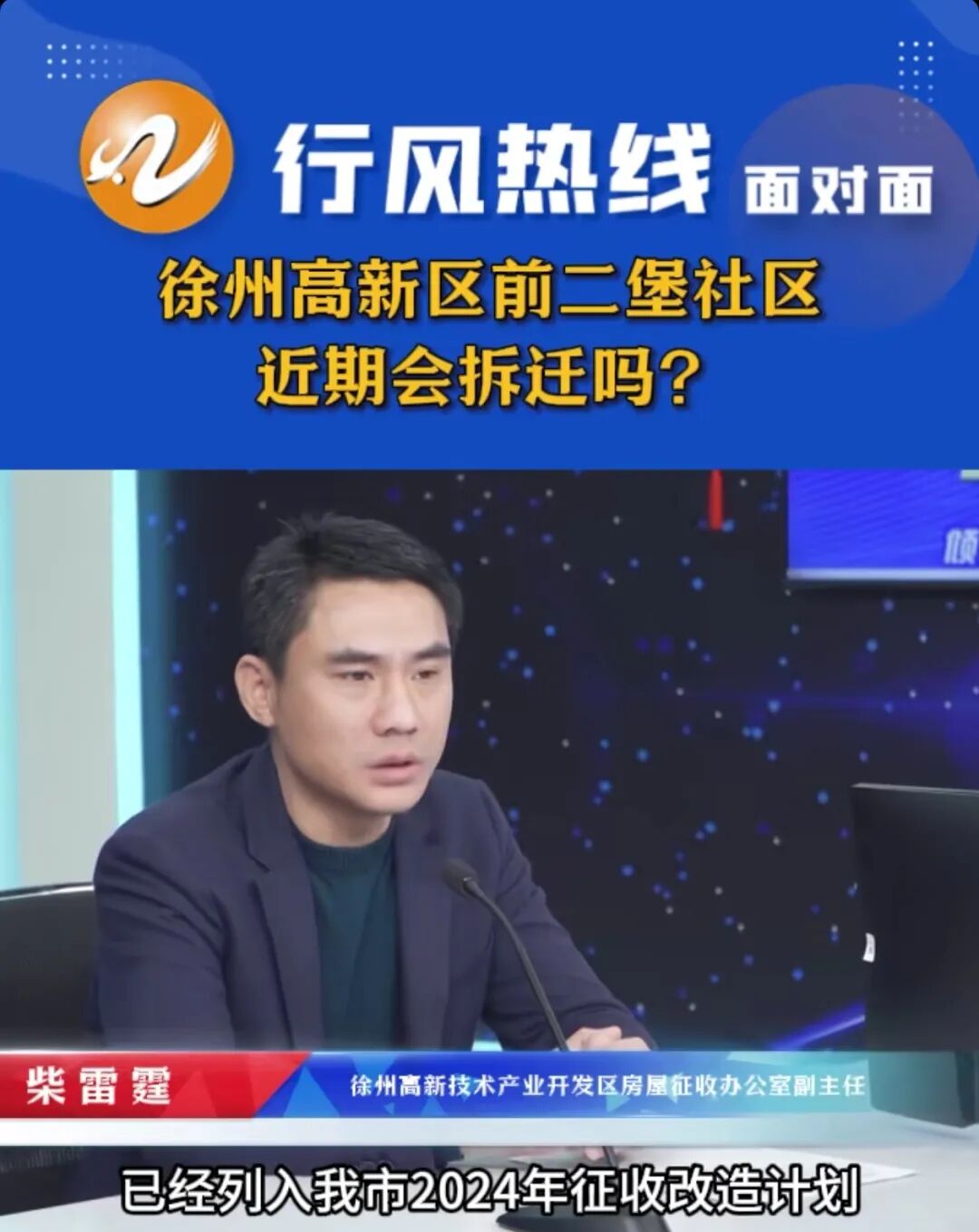 7年前就说要拆迁的铜山二堡村,终于有动静了!近日,在行风热线栏目上,徐州高新技术产业开发区房屋征收办公室副主任柴雷霆的回复,徐州高新区前二堡社区确实已经列入徐州市2024年的征收改造计划,并且计划近期