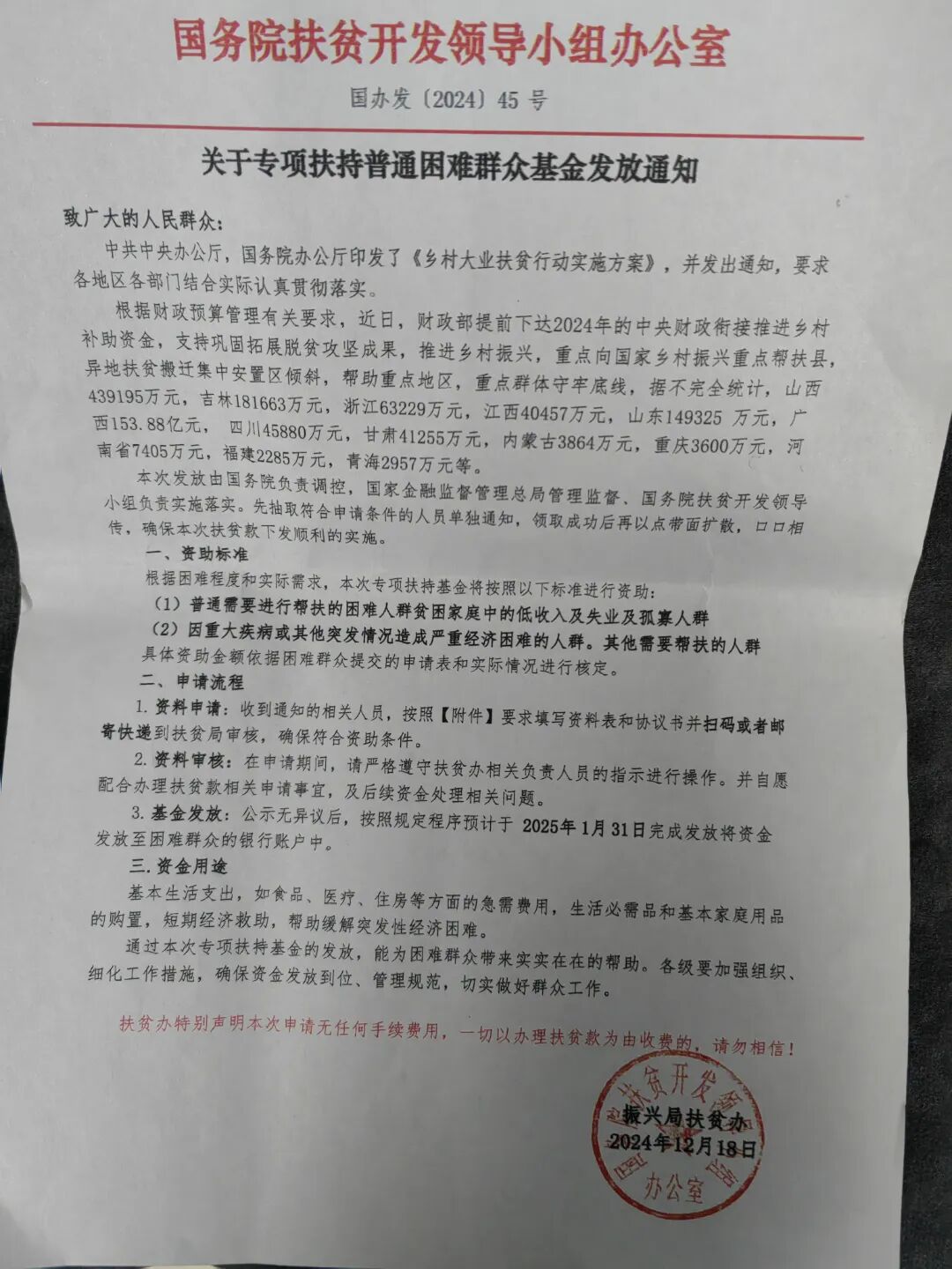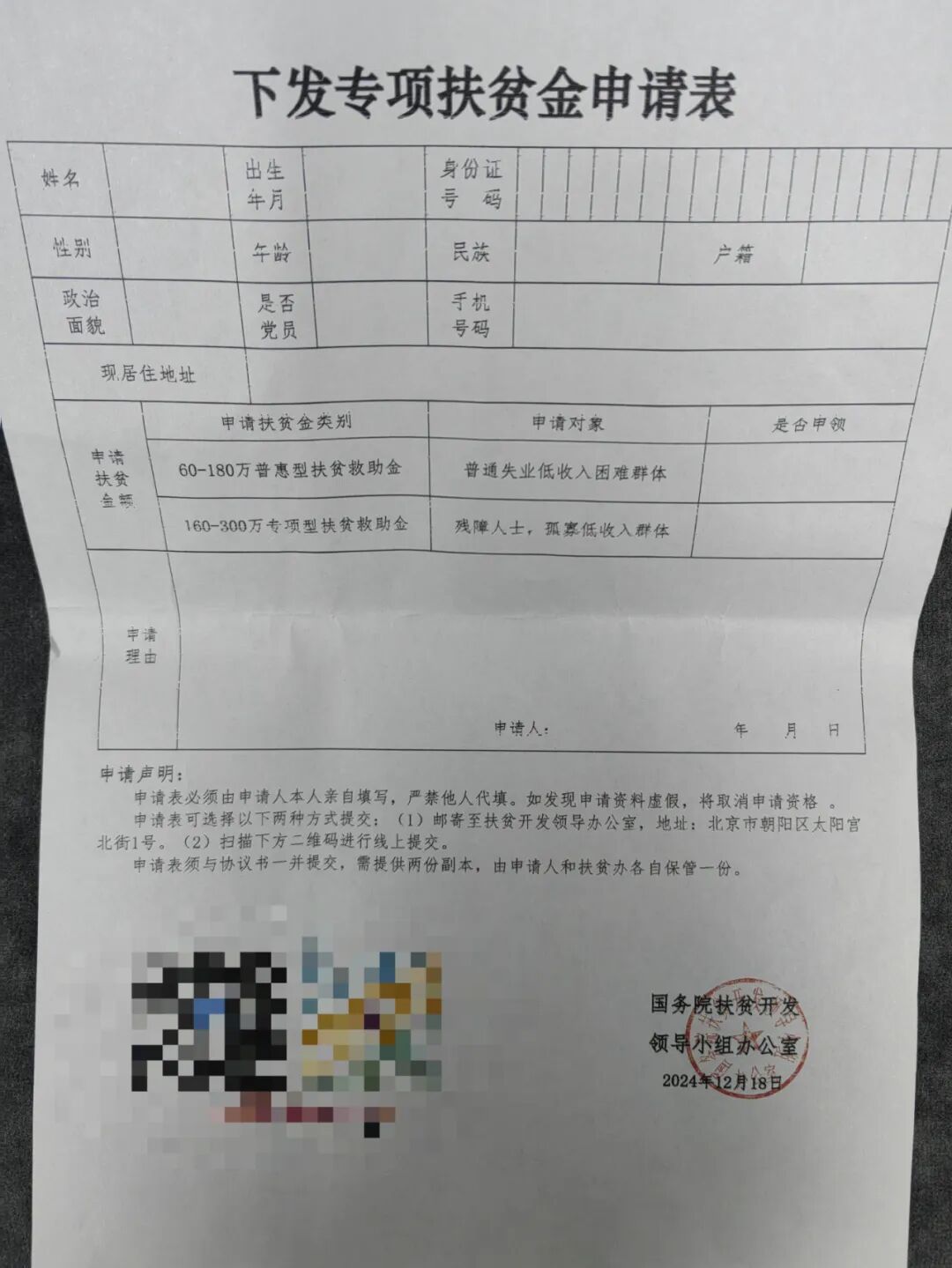 国家终于扶持我了国务院发文给我发补助了只需填写申请表即可申请领取专项扶贫金近日丰县师寨镇村民温女士和邻居闲聊时了解到其邻居收到一份“国务院”的快递是关于专项扶贫基金的申请温女士想到自己在“师寨镇凤城前