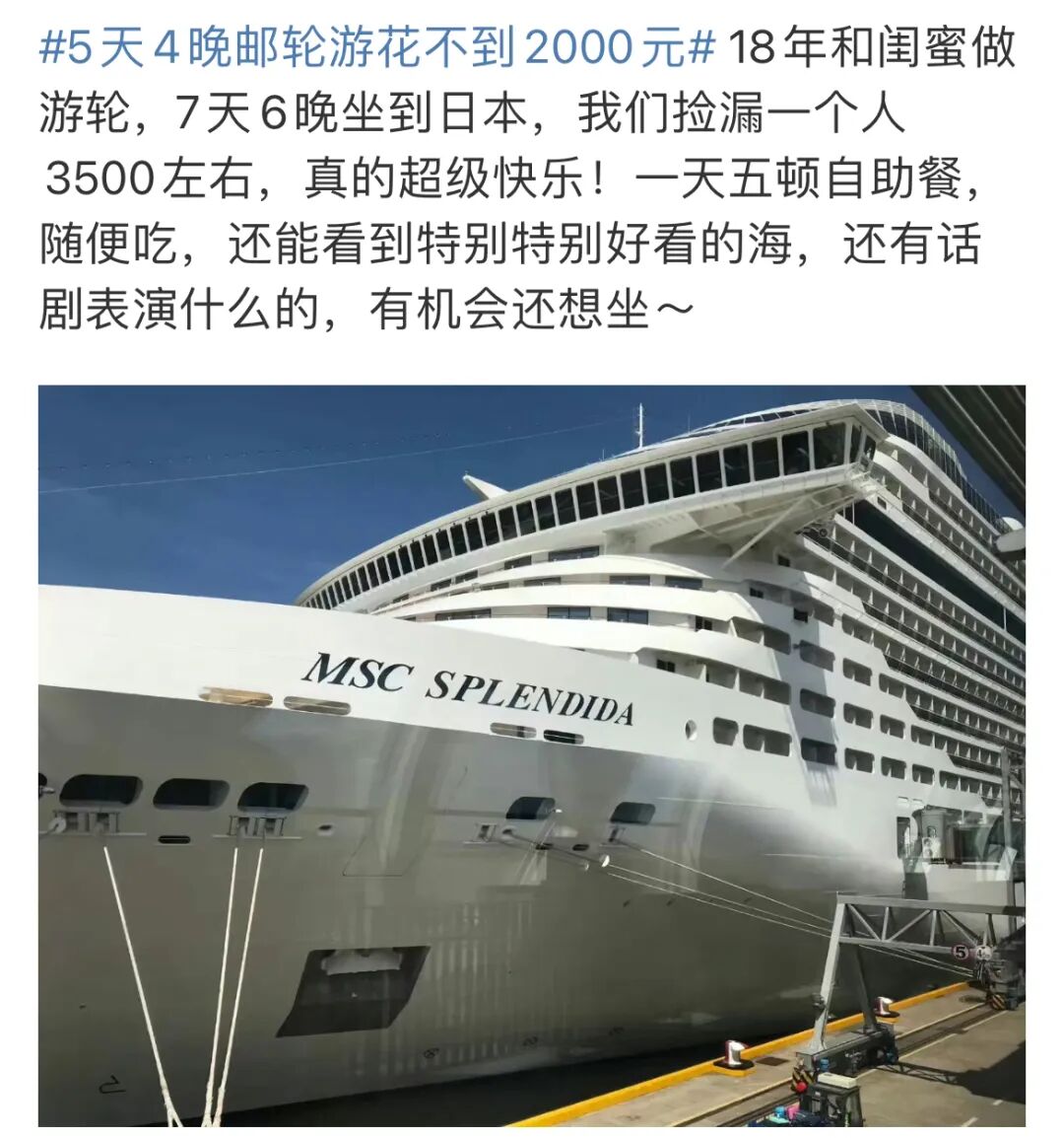 “1999元捡漏邮轮海景房”“日韩邮轮白菜价”“尾单甩房亏本卖了”……7月以来,社交平台和各种邮轮社群里充斥着低价甩舱的信息。01价格大跳水,5天4晚不到2000元据时代财经报道,6月底才从日本旅游回