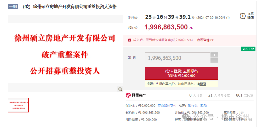 今天,我在阿里法拍网上看到《徐州硕立房地产开发有限公司重整投资人资格》发布。该公司已破产,其在徐州有一个停工的住宅项目——金科汉王小镇。01.徐州硕立房地产开发有限公司土地使用权评估价、在建工程评估价
