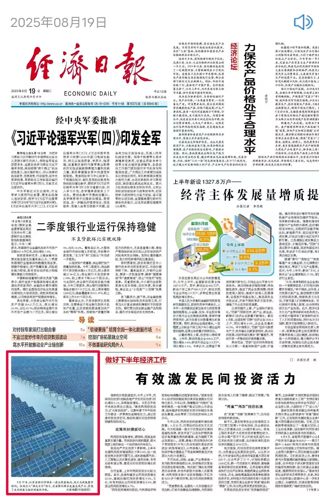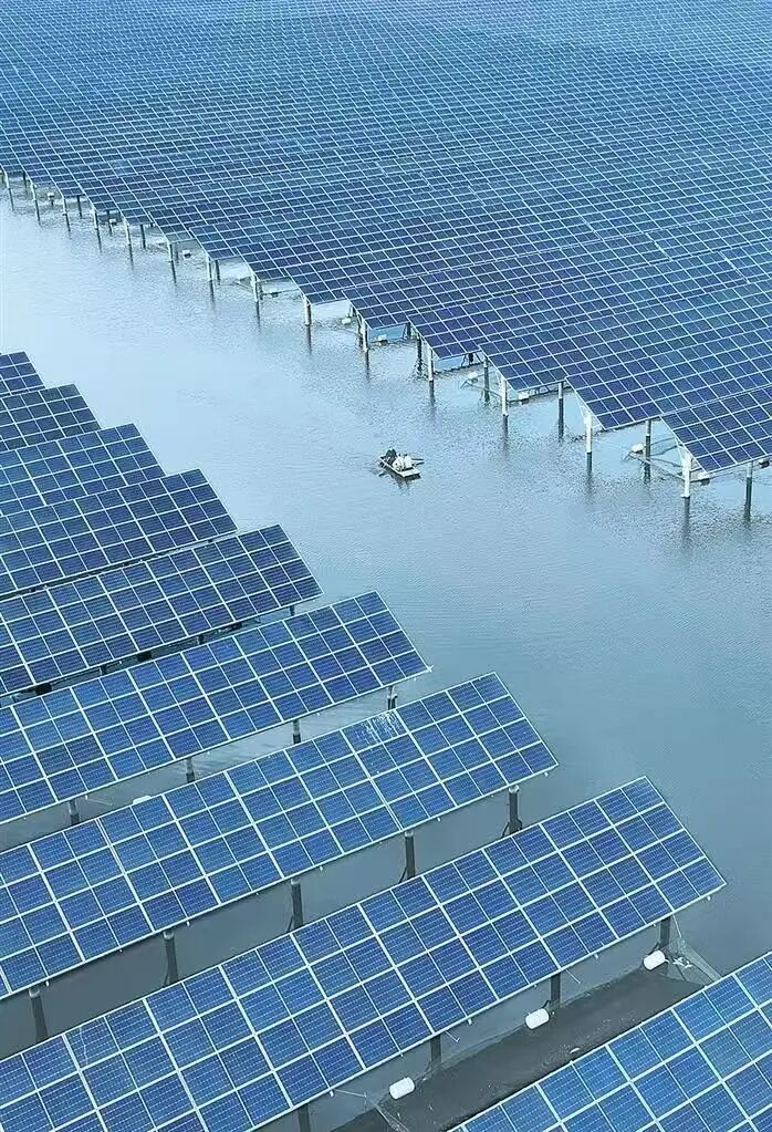 8月19日《经济日报》头版刊发图片新闻关注沛县采煤沉降区“渔光互补”项目8月18日,江苏省徐州市沛县一座光伏基地内,成片光伏板整齐排列。当地引入“渔光互补”项目,在采煤沉降区发展光伏产业,实现了生态效