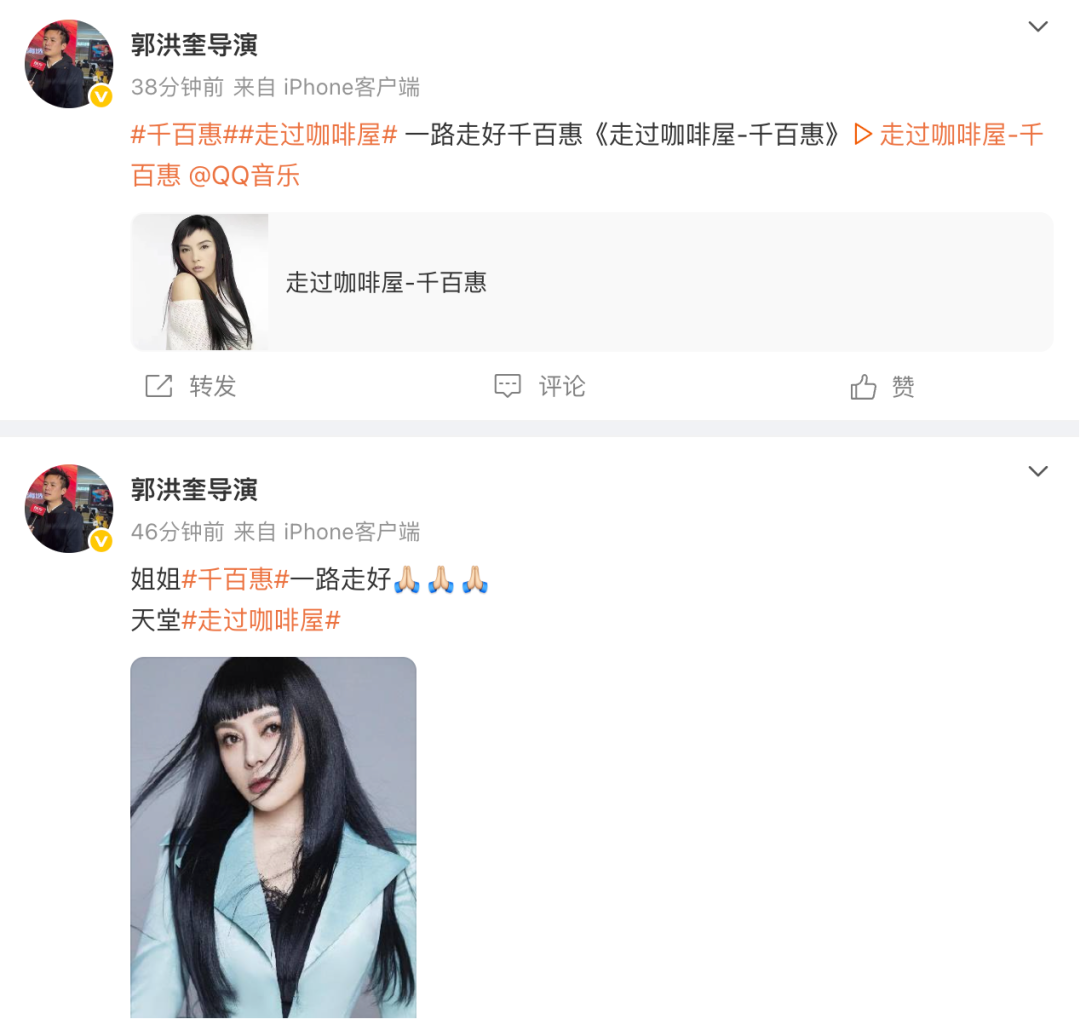 8月20日19:43,华语流行乐男歌手黄安通过微博发布讣告称,台湾著名歌手千百惠于8月19日凌晨因病离世,享年62岁。导演郭洪奎等圈内人士亦发文悼念。据公开资料,千百惠,原名钟兰蕊,1963年5月出生