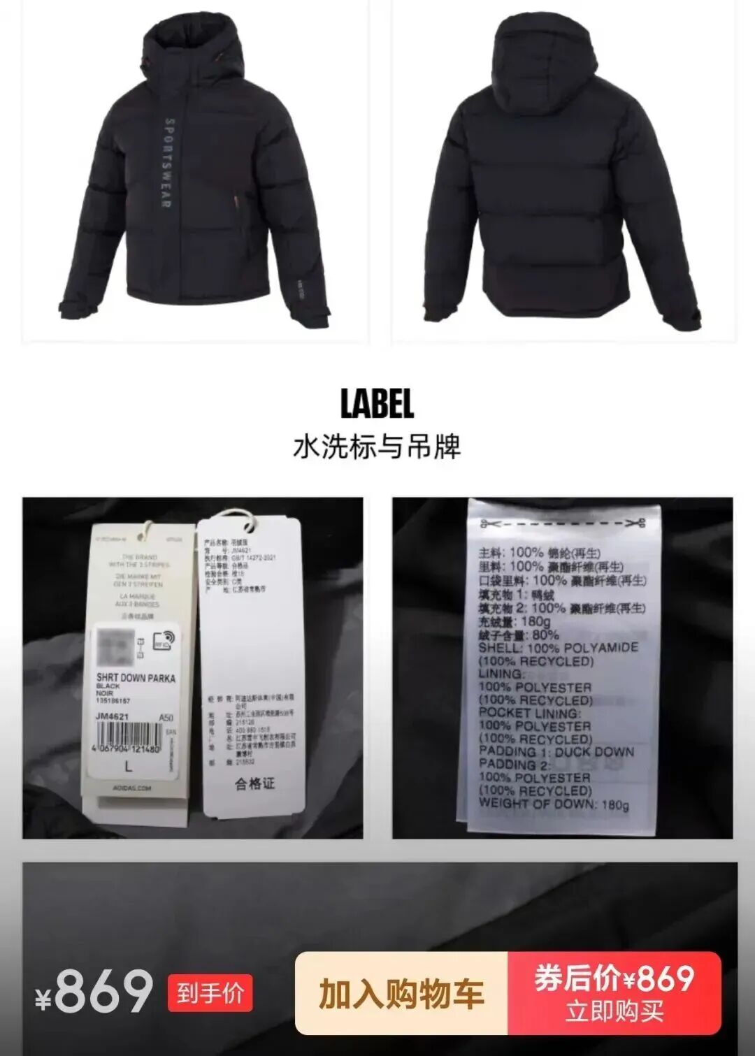 2025.10.21据经视直播,近日,有网友在社交平台发帖称,其在短视频平台直播间购买的阿迪达斯羽绒服实为雪中飞代工产品,并表示“不如直接买雪中飞,何苦中间赚差价”。对此,阿迪达斯客服回应称,所售产品
