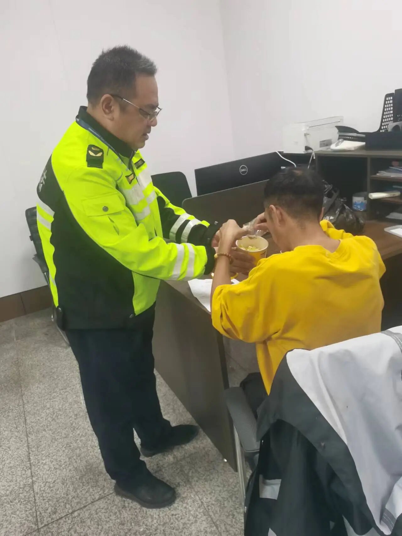10月15日14时许,邳州市高铁站区综合执法大队工作人员汤民在出站闸机附近巡逻时,发现一名中年男子瘫坐地面,衣衫脏乱、神情萎靡。经询问,该男子系邳州议堂镇人,在外地务工途中遭窃,身无分文,父母双亡、无