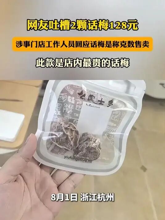 近日,有网友发帖称,在杭州万象城么凤士多购买话梅时碰到“话梅刺客”,买两颗话梅竟然花费128元。该网友发布的订单图片显示,“散-么凤士多清香话梅王”单价为每千克7160.00元。不少网友在评论区留言称