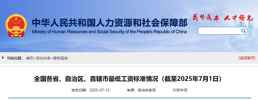 7月15日,人社部官网公布全国各省、自治区、直辖市最低工资标准情况(截至2025年7月1日)。什么是最低工资标准?最低工资标准,是指劳动者在法定工作时间或依法签订的劳动合同约定的工作时间内提供了正常劳
