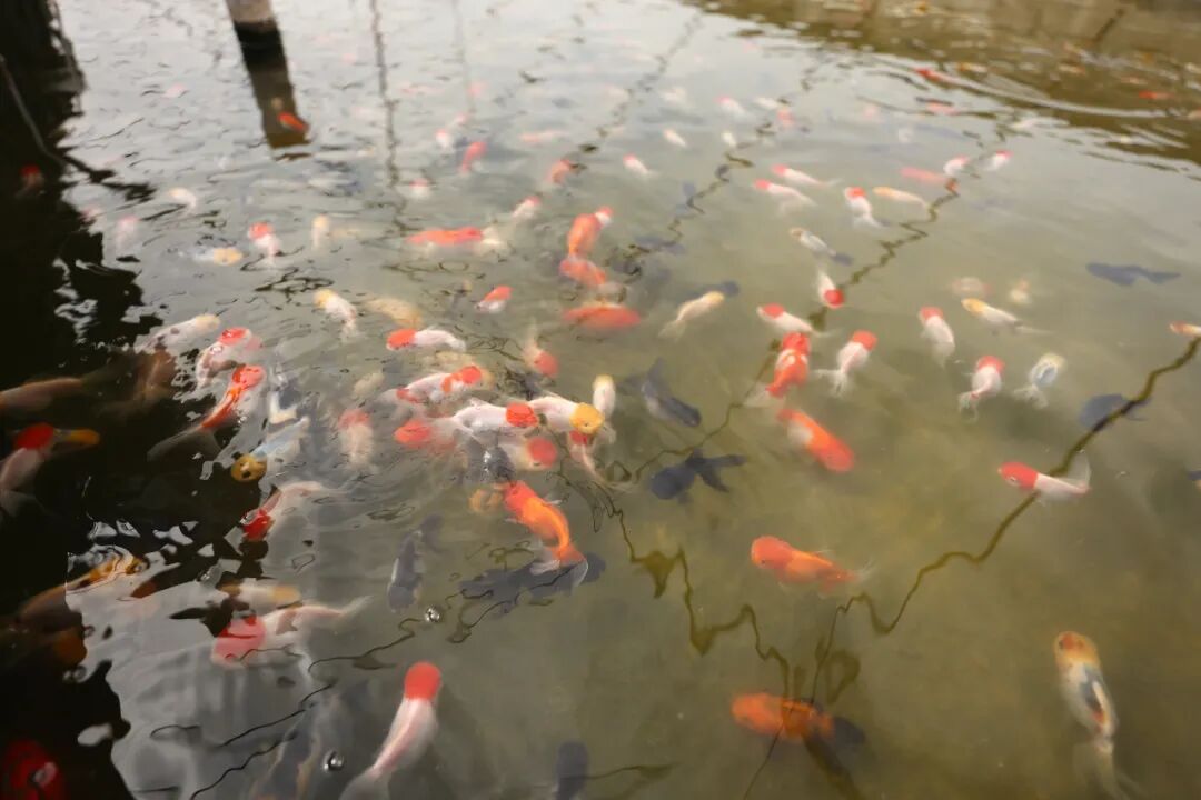 雨后的大龙湖街道曹山社区、段山社区,水汽氤氲,无数个渔场错落分布,一眼望不到头。清澈池水中,成群金鱼悠然游弋,尾鳍轻摆,金光闪烁,宛如一幅流动的水墨画。正是这些不起眼的水塘,悄然改变了当地村民的生活。