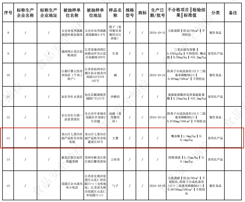 近日江苏省市场监督管理局发布最新通告在近期组织的食品安全抽检中检出7大类食品23批次样品不合格其中涉及徐州3家一起来看看!邳州市润家福百货店的白芷新沂市金美辣饼店(个体工商户)的油条泉山区七里沟农副产