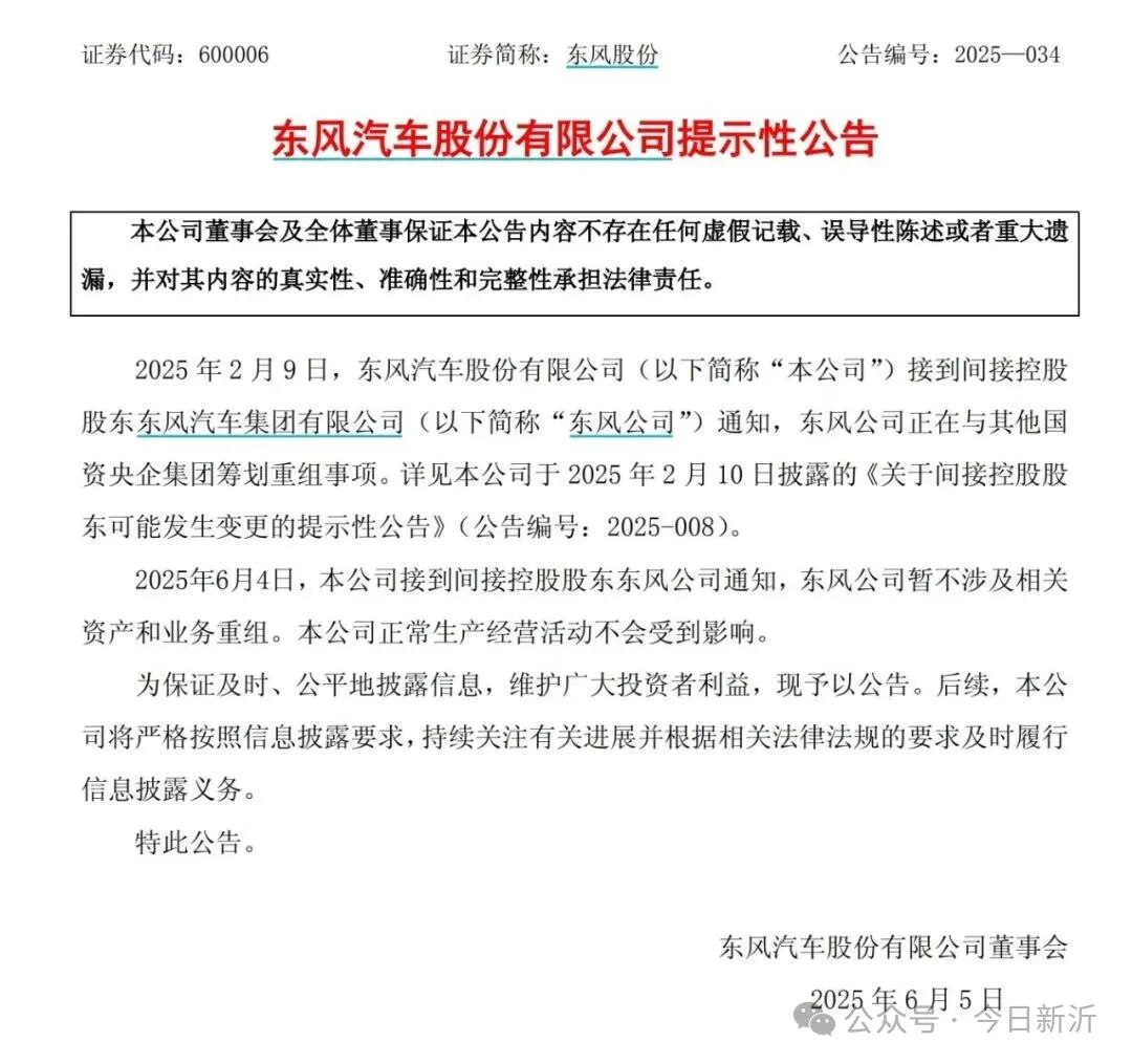 传闻已久的东风、长安合并事宜已中止。6月5日早间,东风股份、长安汽车双双发布公告。东风公司暂不涉及相关资产和业务重组东风股份公告称,本公司接到间接控股股东东风公司通知,东风公司暂不涉及相关资产和业务重