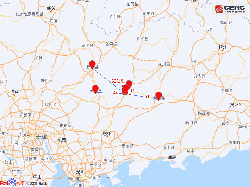 速报参数速报参数:据中国地震台网正式测定,5月29日13时17分在广东河源市源城区发生3.5级地震,震源深度11公里,震中位于北纬23.71度,东经114.69度。基础背景附近村镇:本次地震周边5公里