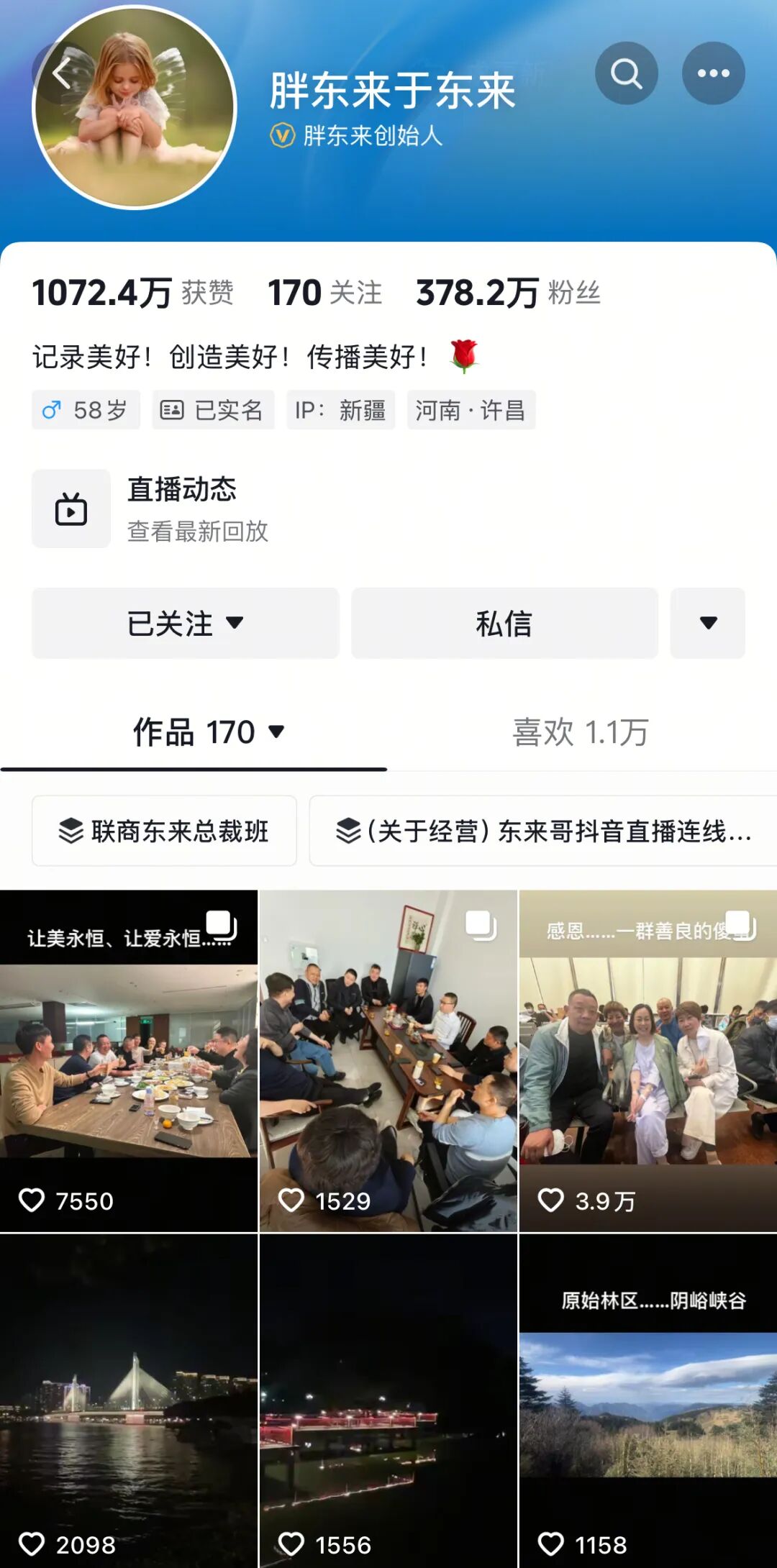5月3日,据媒体报道,胖东来创始人于东来的抖音账号“胖东来于东来”已设为私密账号。记者搜索发现,截至5月3日16时许,于东来的抖音账号2024年至2025年的视频均已不可见,目前最新视频为2023年1