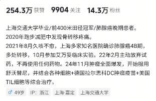 3月31日,抗癌网红“宝炫是冠军”账号发布讣告:慈父王胜于2025年3月31日凌晨在至亲好友的陪伴中与世长辞与病魔抗争四载,终年53岁“宝哥”简介显示,其毕业于上海交通大学,曾是400米田径冠军。20