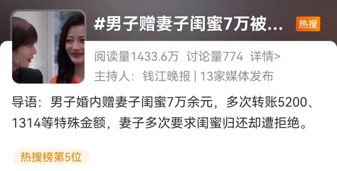 3月31日晚,“男子赠妻子闺蜜7万被判全额返还加利息”的词条,冲上热搜。一边是同床共枕的丈夫,一边是情同姐妹的“闺蜜”,女子王某没想到有一天,自己身上会上演被丈夫和“闺蜜”双双“背刺”的狗血剧情。近日