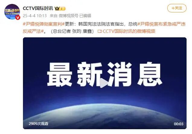 韩国宪法法院4日上午宣布通过对尹锡悦的弹劾,尹锡悦被罢免总统职务,成为继2017年朴槿惠被弹劾下台之后,第二位被弹劾下台的韩国总统。北京时间今天上午10时,韩国宪法法院对尹锡悦弹劾案作出宣判。韩国宪法