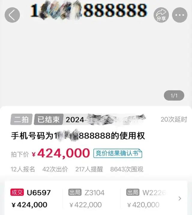 3月9日,一场备受关注的手机号码拍卖活动落下帷幕。“1**77777777”的手机号码使用权,以88万元的高价起拍。记者了解到,该号码每月最低消费为1000元,过户还须先预存2万元。最终,24名竞买人