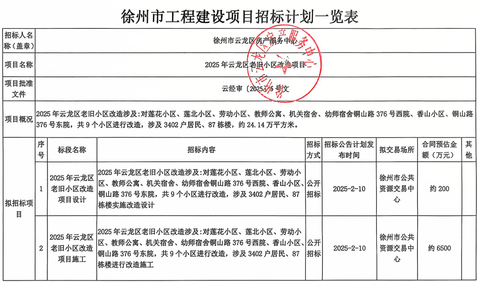徐州这9个老小区,要改造了!而且可不是说随便弄弄,这次要花7250万,来提升小区居住环境!猛砸7250万,徐州这9个小区,恭喜了!近日,徐州市公共资源交易平台发布《2025年云龙区老旧小区改造项目》招