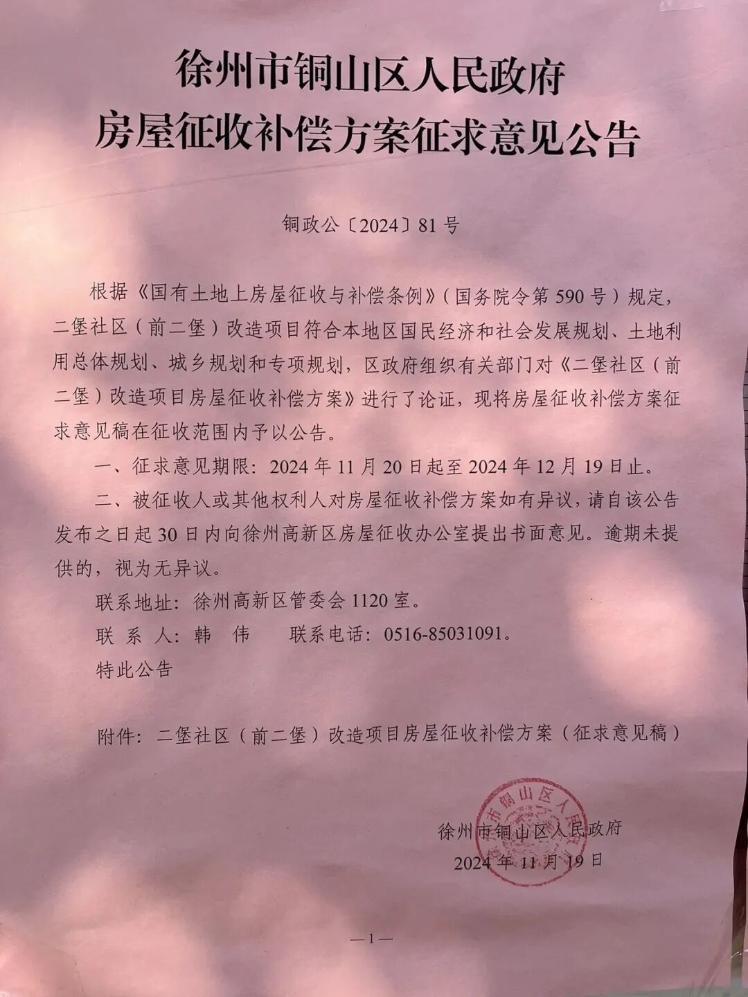 7年前就说要拆迁的铜山二堡村,终于有动静了!近日,在行风热线栏目上,徐州高新技术产业开发区房屋征收办公室副主任柴雷霆的回复,徐州高新区前二堡社区确实已经列入徐州市2024年的征收改造计划,并且计划近期