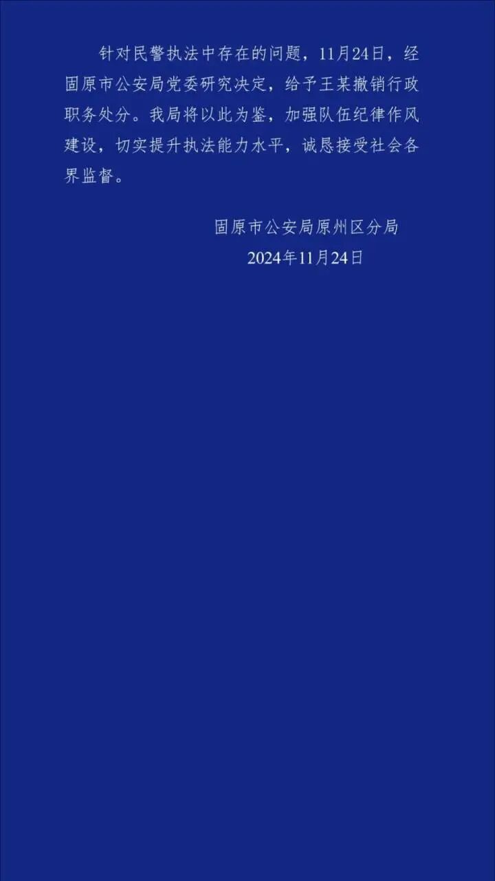 11月23日,有网友发视频称,宁夏固原市公安局张易派出所执法人员殴打一名12岁小学生,引发关注。11月24日,平安原州官微发布警情通报。此前报道网传视频显示,两名穿着制服的男子与一名穿着校服的男孩迎面