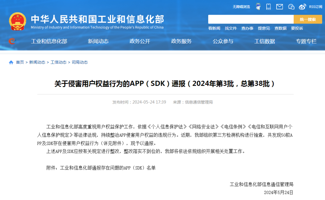 近日工信部通报一批侵害用户权益行为APP快看看你手机里有没有工业和信息化部通报存在问题的APP(SDK)名单