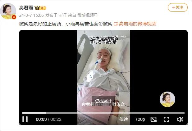 3月10日,点读机女孩@高君雨 发布视频,其家人称小雨状态突然变差,持续发烧不退,现已紧急转进ICU。据悉,高君雨妈妈在3月9日的视频中透露,小雨状态不佳,一直在睡觉。此前报道3月1日上午,在“点读机